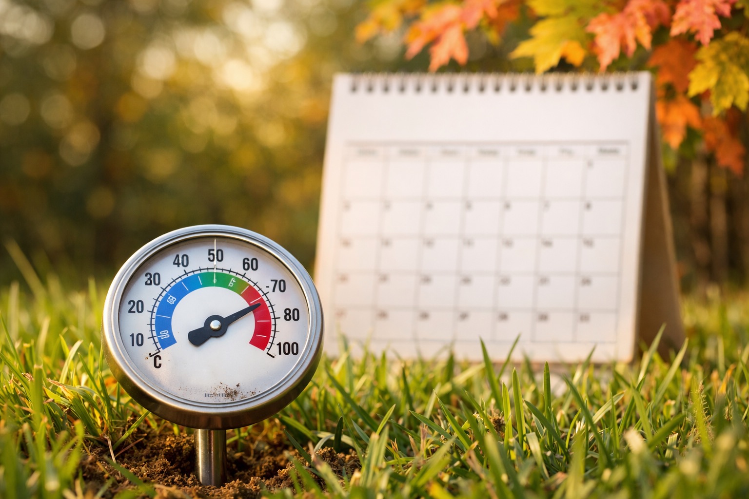 Check soil temperature with a thermometer at 4-inch depth two mornings in a row. Consistent readings between 55-65°F mean ideal germination conditions for cool-season seed.