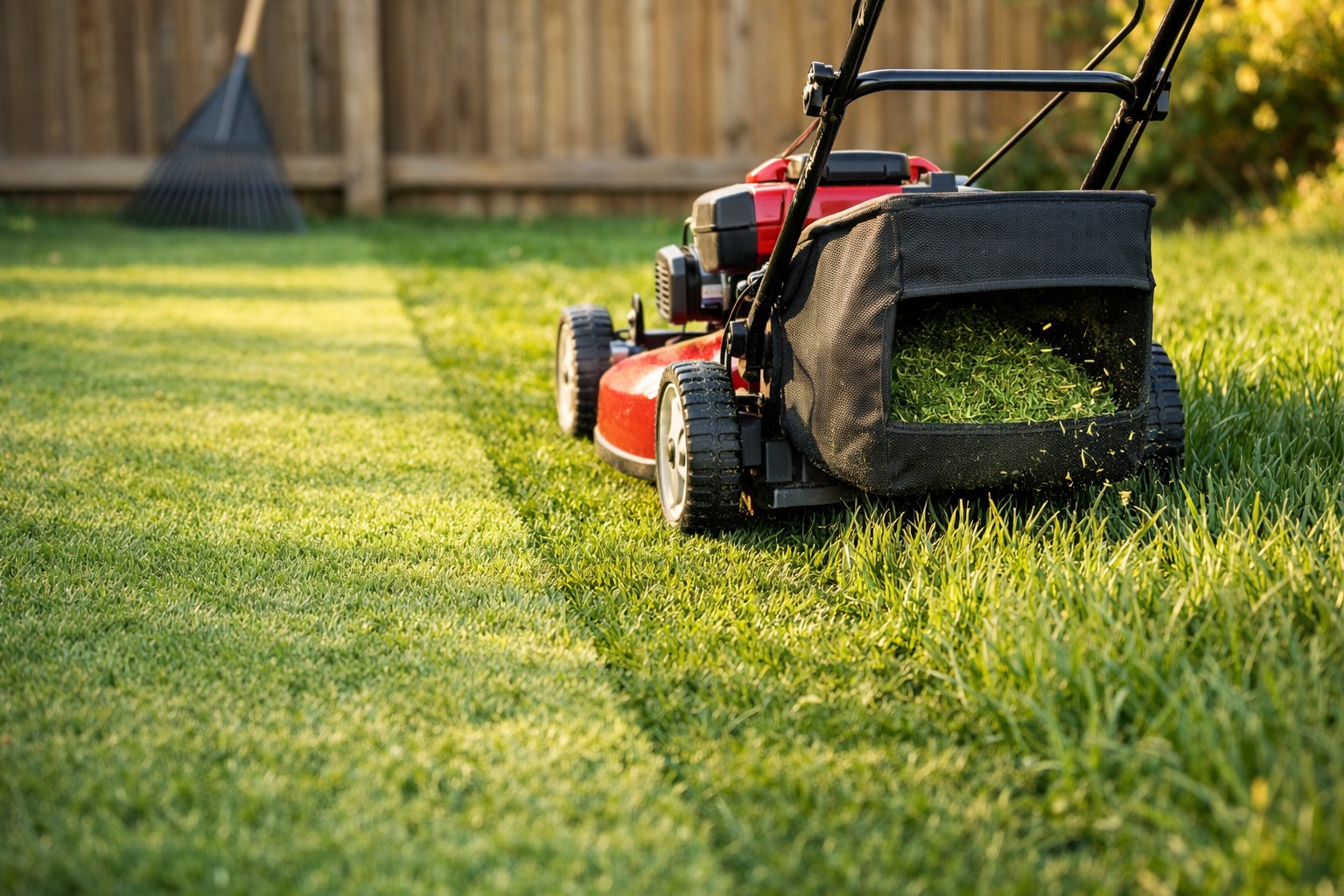 Mow your lawn to about 1.5-2 inches — roughly one notch lower than your normal cutting height. This shorter cut lets the aerator tines penetrate cleanly and gives new seed direct access to sunlight instead of being shaded out by existing grass blades. Bag the clippings rather than mulching so they don't smother the seed later. Rake up any leaves, sticks, or debris. If you have thick thatch (the spongy brown layer between the grass blades and soil), and it's thicker than 1/2 inch, consider dethatching before aerating.