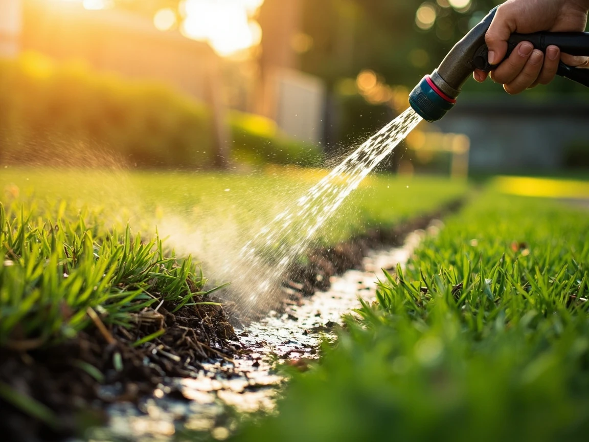 If the ground is hard or hasn't rained in a week, water along the marked edge line with a sprinkler or hose for 15-20 minutes the evening before you plan to edge. Moist soil cuts cleanly and ejects from the trench in solid strips, while dry soil crumbles and fights every cut. You want the top 6 inches damp but not muddy — if water pools on the surface, wait a few hours before starting.