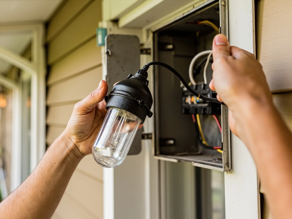 Go to your electrical panel and flip off the breaker that controls the outdoor light circuit — it's often labeled "exterior lights," "front porch," or "garage." If the labels are unclear, turn on the existing light first, then flip breakers one at a time until it goes dark. Once the breaker is off, tape a note over it so nobody flips it back on while you're working. Go back to the fixture and hold a non-contact voltage tester against the wire connections to confirm they're dead before proceeding.