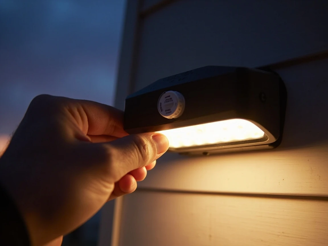 If the light triggers on passing cars or tree branches, reduce sensitivity to 50% and narrow the detection arc by using the plastic blinders (included with most fixtures) to mask off the edges of the sensor.