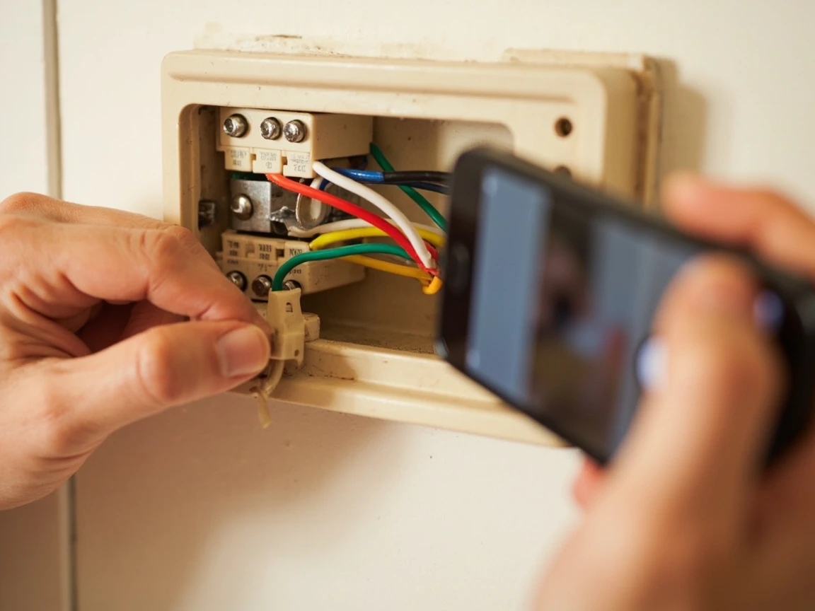 - •Always turn off the HVAC system at the breaker before disconnecting any thermostat wires — the wires carry 24V AC from the furnace transformer, which won't kill you but can damage the new thermostat's circuit board if wires short together.