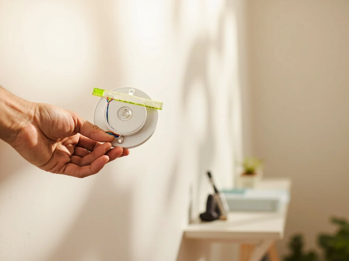Thread the labeled wires through the center opening of the new thermostat's base plate and hold it against the wall. Use the built-in bubble level (most smart thermostat plates have one) or your own small level to get it perfectly straight — a crooked thermostat is surprisingly noticeable. Mark the screw holes with a pencil, drill pilot holes if needed (drywall anchors are usually included), and screw the plate firmly to the wall. Make sure it sits flat with no wobble.