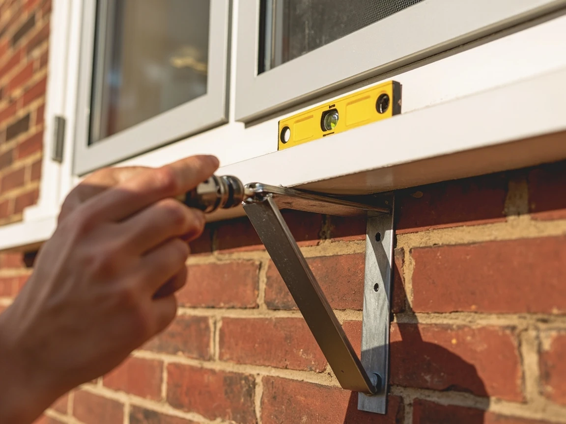 For units over 50 lbs, second-floor or higher windows, or older window frames, install an exterior support bracket before placing the AC. Most brackets mount to the exterior wall below the window using lag screws driven into the wall studs or masonry anchors. Position the bracket so its top edge is level with or just below the windowsill, then level it with a torpedo level and tighten the fasteners. The bracket takes the unit's weight off the window sash and prevents the worst-case scenario — the unit falling out.