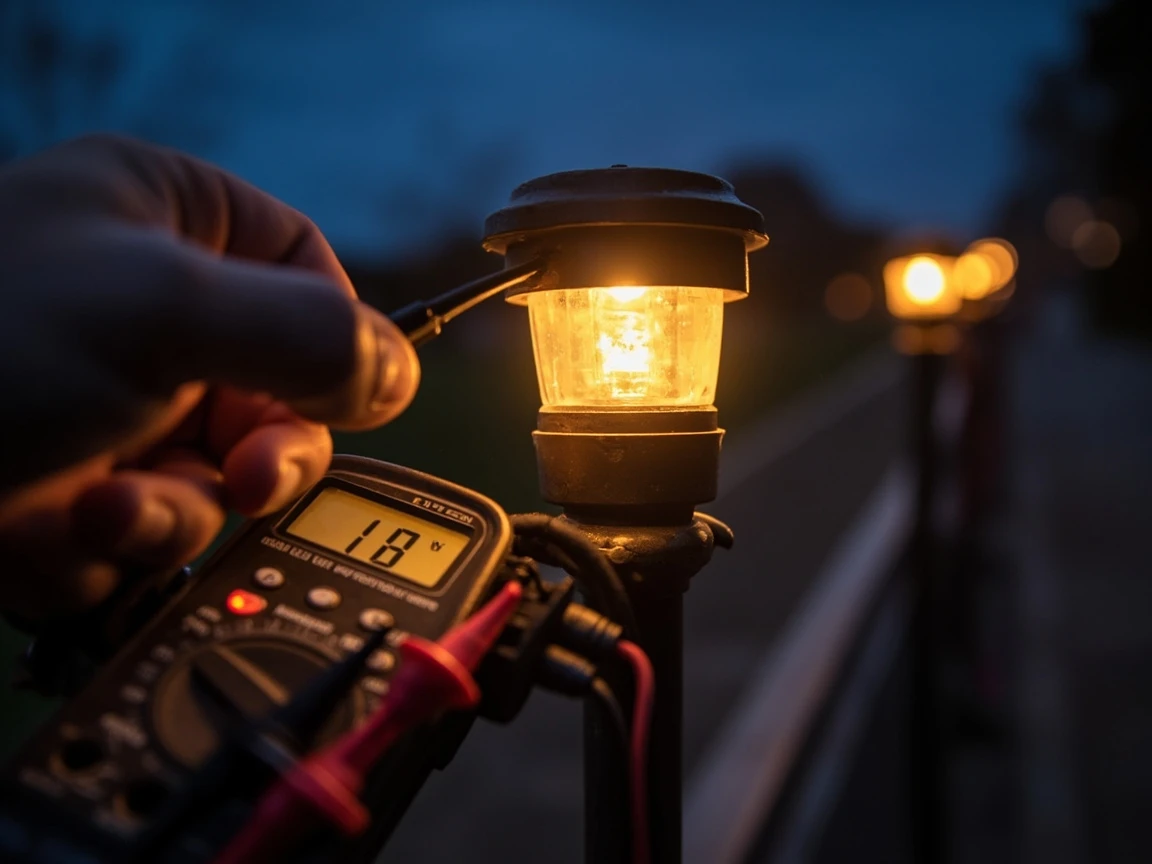 Plug the transformer into the GFCI outlet and switch it on — all fixtures should light up. Wait until dusk to evaluate the actual lighting effect. Walk the entire run with a voltmeter and check the voltage at the first fixture (should read 11.5-12V) and the last fixture on each run (should read no less than 10.8V — a drop of more than 1.2V means the run is too long or too heavily loaded). If the farthest fixtures are dim, move them to the higher voltage tap on the transformer (13V or 14V) until the reading at the far end is close to 12V. Adjust fixture angles and positions while everything is still above ground.