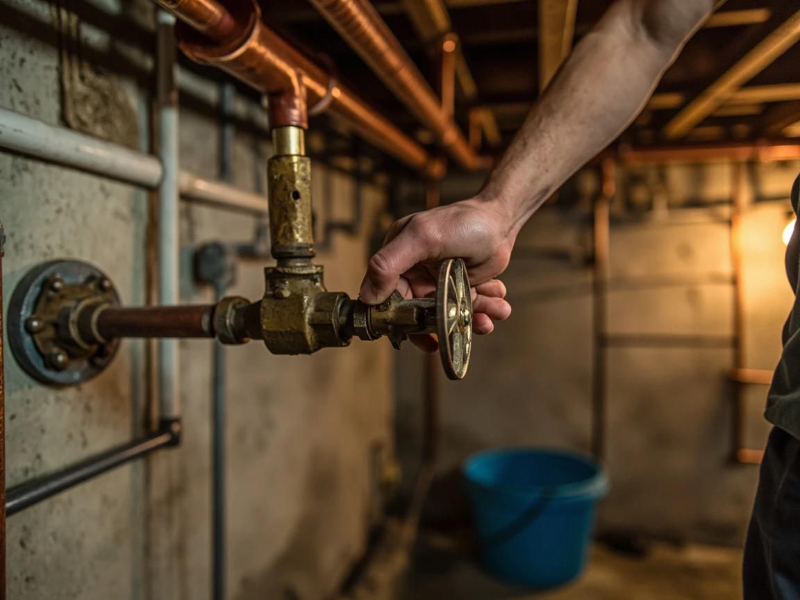 Locate your home's main water shut-off valve — typically near the water meter at the street-side wall of your basement, crawl space, or utility closet. Turn it fully clockwise (or lever to perpendicular) to shut off all water to the house. Then open the faucet nearest to your work area and let it run until it stops — this drains residual water and pressure from the pipes. Open the faucet on the lowest level of your home as well to help drain the system by gravity. Place a bucket and towels under the pipe you will be cutting, because some water will remain trapped in the line no matter how well you drain.