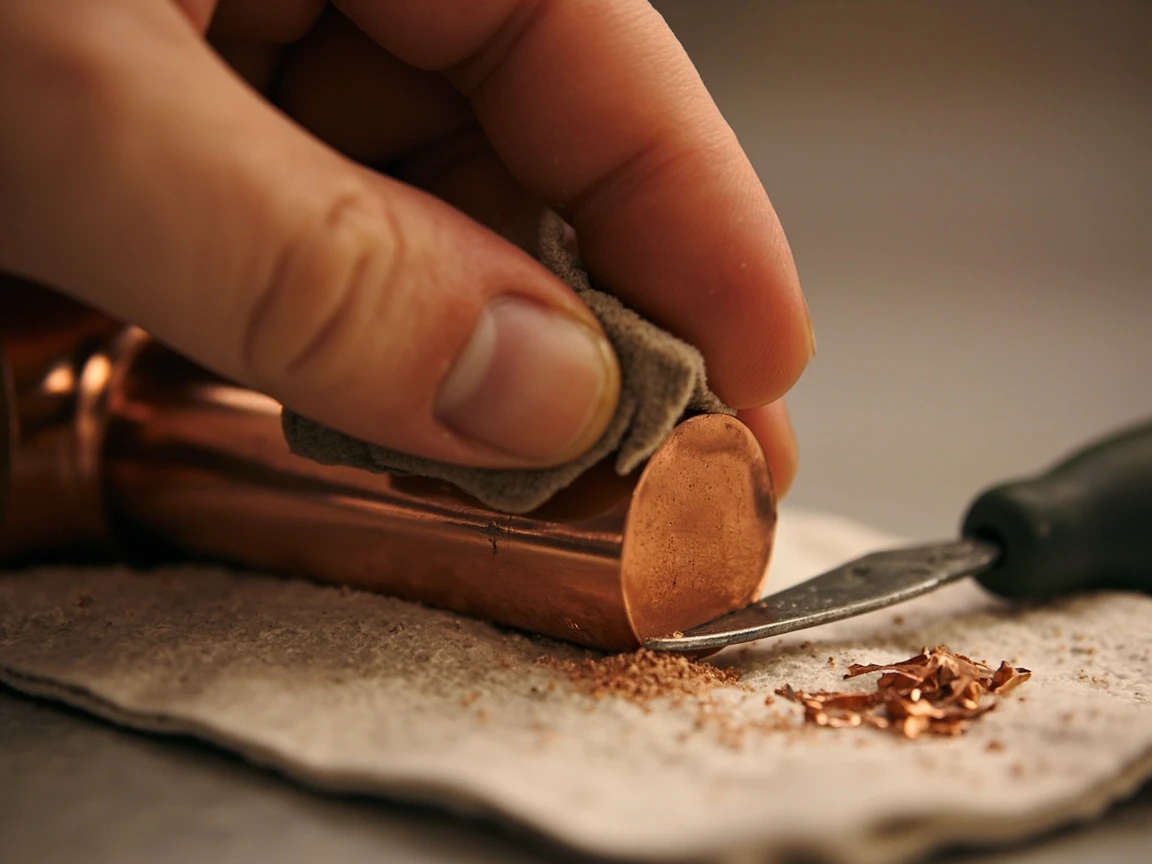A properly cleaned pipe end is the single most important factor in preventing leaks. If the pipe looks dull, green, or has mineral deposits, keep sanding until you see bright copper. This step takes 30 seconds and prevents the most common cause of compression fitting leaks.
