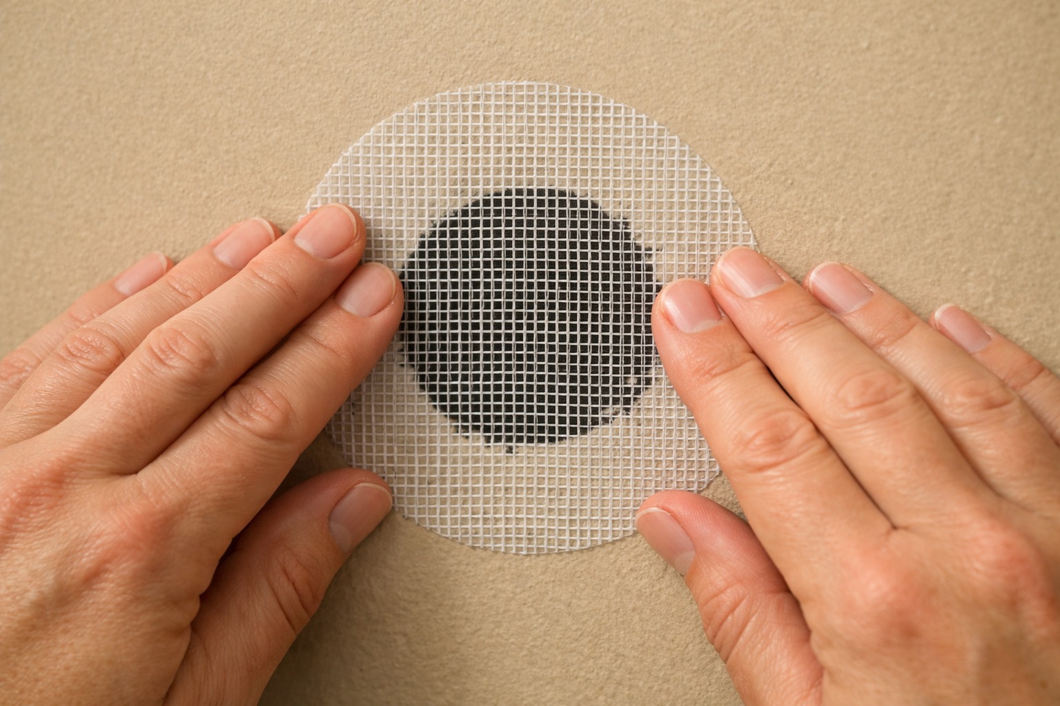 For medium holes (2-4 inches), skip the backer board entirely — a self-adhesive mesh patch sticks directly over the hole and is strong enough for anything that size. It's faster and the result is identical.