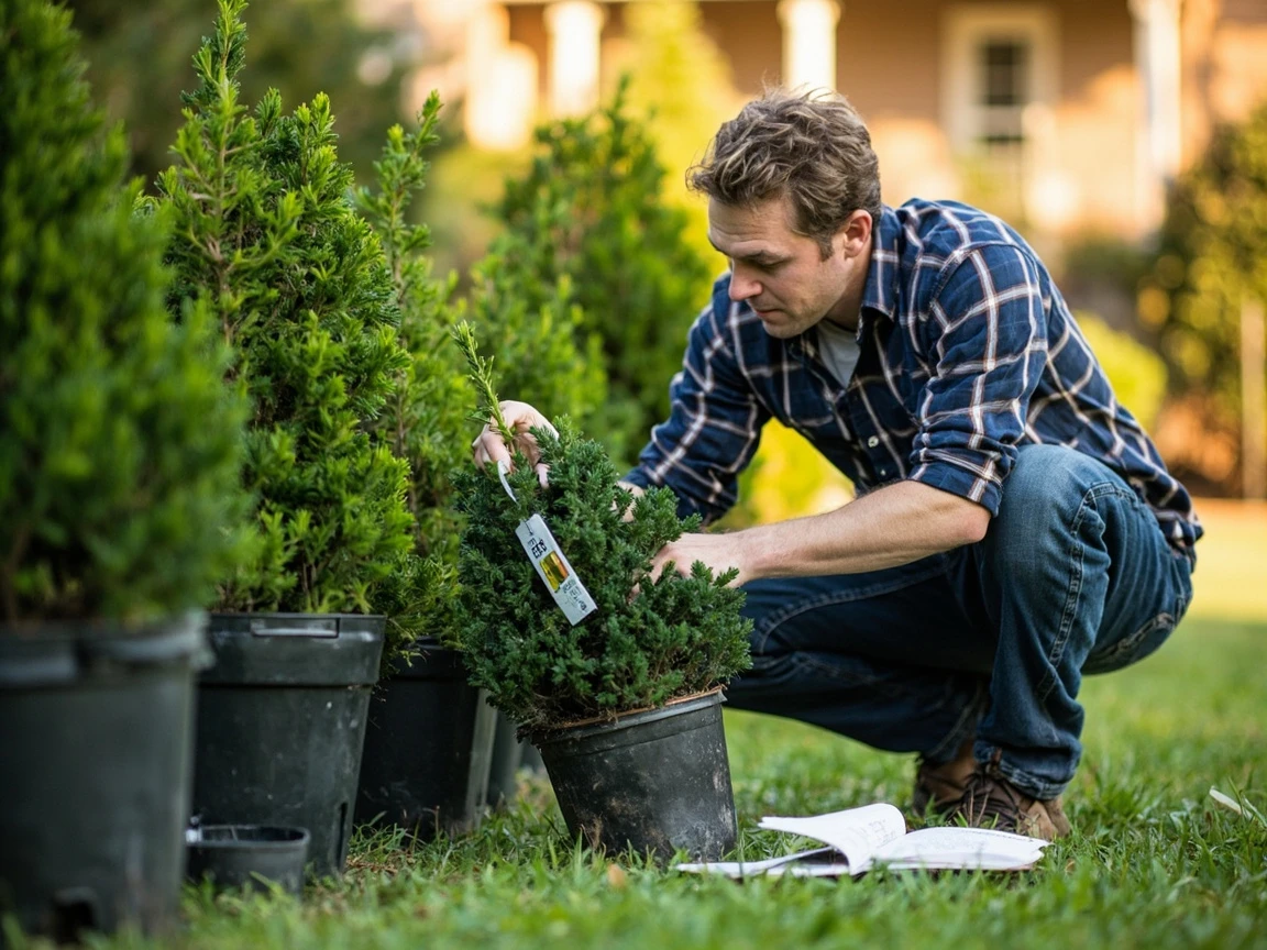 Visit a local nursery rather than a big-box store — local growers stock species proven in your climate and can warn you about disease pressures like bagworm or boxwood blight in your area.