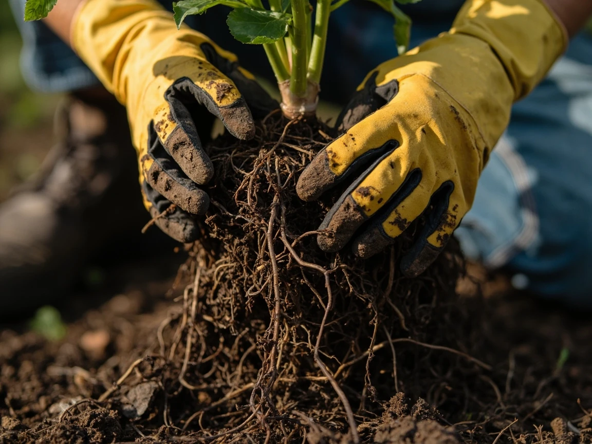 If the plant is root-bound with a thick mat of circling roots, don't be afraid to slice 1/2 inch off the bottom and sides of the root ball with a sharp spade — it looks aggressive, but it dramatically improves establishment.