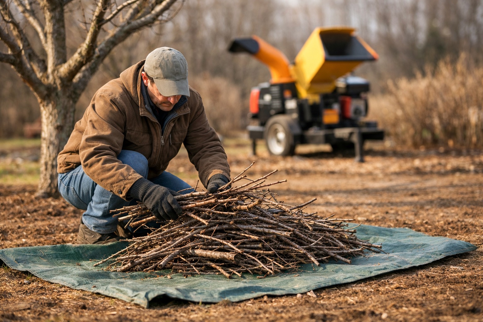 Remove all pruned material from under the tree — don't leave it on the ground, where it can harbor disease and pests. Do not compost diseased clippings. Dispose in yard waste bins or chip into mulch for non-diseased wood. For cuts over 1 inch in diameter, optional application of pruning sealant can reduce desiccation while the wound heals.