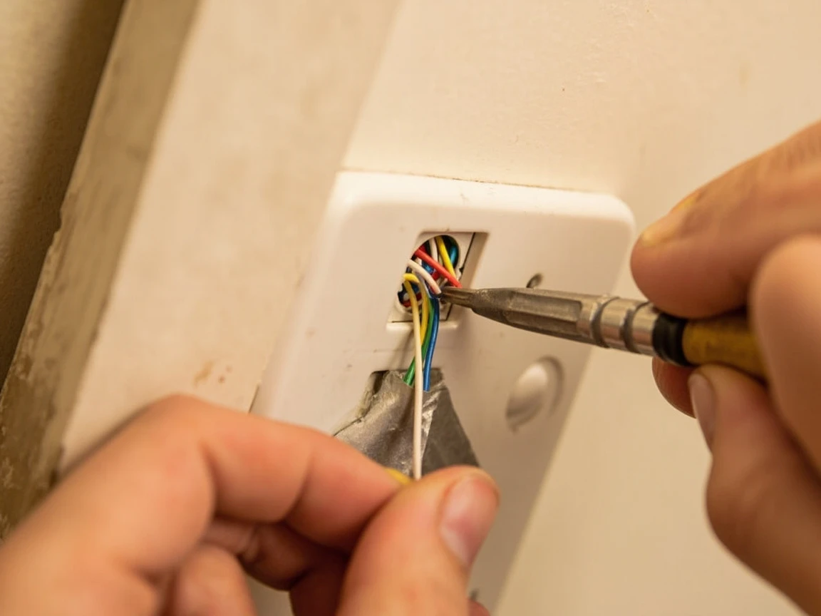 Loosen each terminal screw counterclockwise with your flathead screwdriver and gently pull the wire free. As you disconnect each wire, wrap it around a pencil or tape it to the wall so it doesn't slip back into the hole — fishing wires out of the wall cavity is frustrating and sometimes impossible without cutting drywall. Once all wires are free, unscrew the wall plate mounting screws and remove it from the wall.