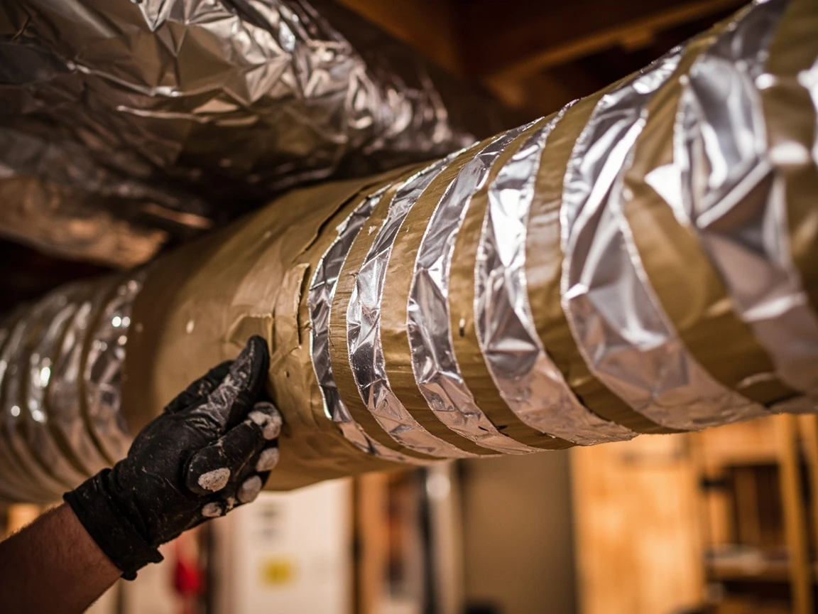 Never use cloth duct tape for sealing HVAC ducts. Despite the name, standard duct tape dries out and falls off within 6-12 months in hot attic or cold crawlspace conditions. Use only UL 181-rated foil HVAC tape or mastic — the rating is printed directly on the tape or mastic container.