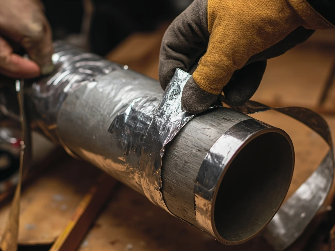 Foil tape works best above 50°F — if your basement or crawlspace is colder than that, the adhesive will not grab properly. Warm the tape and duct with a hair dryer before applying, or save this job for a warmer day. Mastic is much more forgiving of cold temperatures.